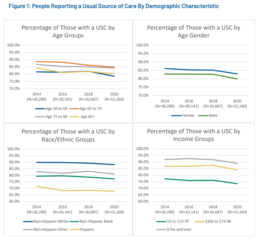 Milbank published a recent report examining trends in the use of a 'usual source of care' – defined as a health professional or care location where an individual can go if sick or in need of medical advice – among folks 50+ years of age, with a focus on racial/ethnic disparities and socio-demographic traits.